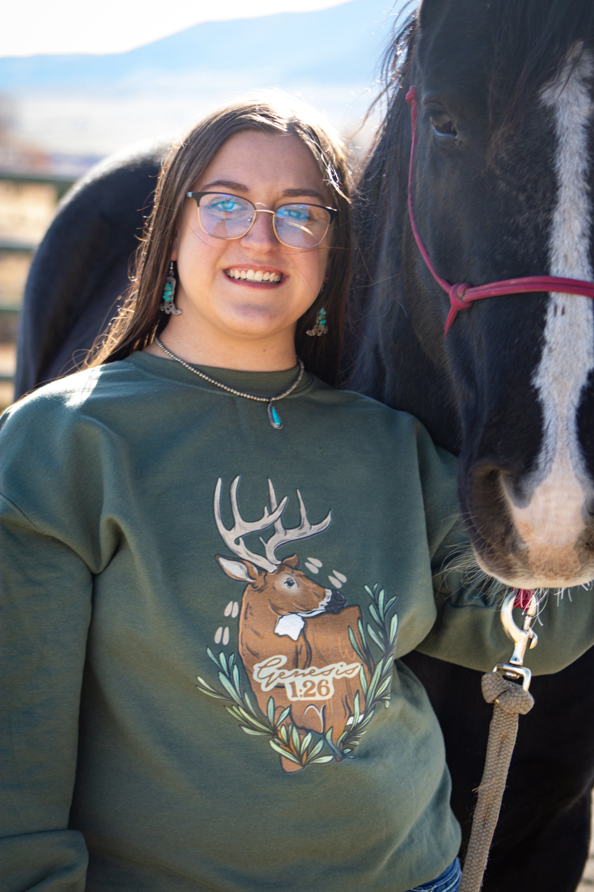 Inspired by faith and the beauty of creation, this sweatshirt captures a verse close to every outdoorsman’s heart: “Then God said, ‘Let us make man in our image… and let them have dominion over all the earth.’” This crewneck blends reverence and rustic charm in one timeless piece.